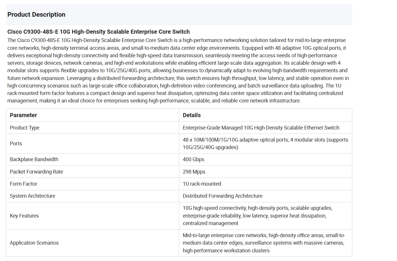 Cisco Catalyst C9300-48s-E Enhanced Operational Efficiency Network Switch
